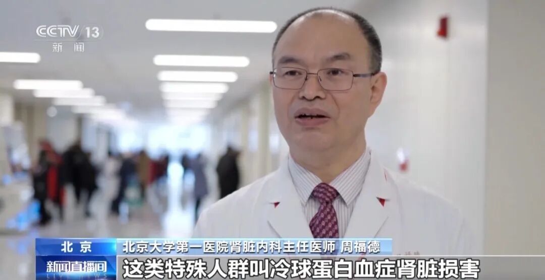 北京大学第一医院肾脏内科主任医师 周福德:还有一类特殊人群是冷球蛋白血症肾脏损害,他血液里有一种特殊蛋白叫冷球蛋白,温度低的时候容易凝集堵塞血管。肾脏血管堵了,出现肾衰;皮肤血管堵了,出现皮肤坏死;动脉的血管堵了,出现肢体的坏死。所以这类病人一定要注意保暖。