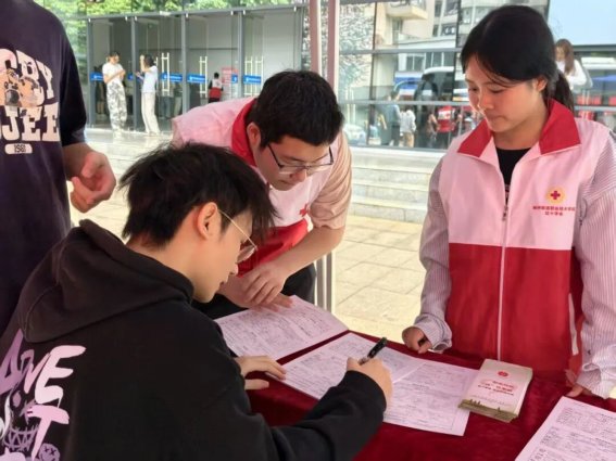 青年学子参与无偿献血填写表格
