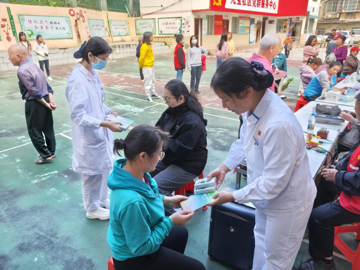 除了特色中医体验,活动还设有“健康宣教与药具发放区”。医护人员向育龄居民发放避孕药具及相关宣传资料,详细讲解生殖健康知识。针对中老年人群慢性病高发的特点,团队重点开展了高血压、糖尿病等疾病的防治宣教,发放健康折页120余份,并提供免费血压、血糖测量服务。此外,医护人员还结合秋冬季节特点,推荐适宜的食疗方案,引导居民将中医养生理念融入日常生活。