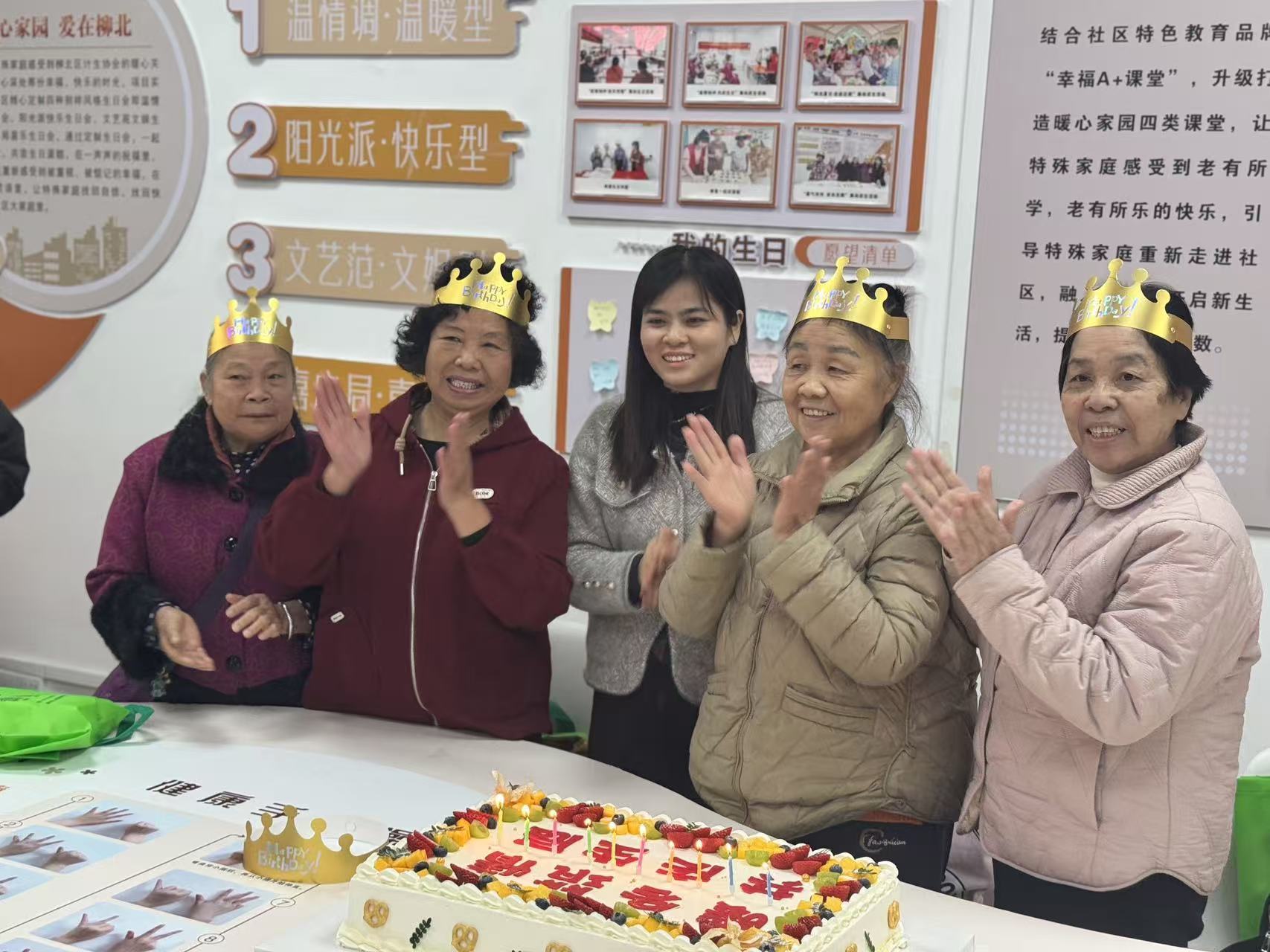 手工环节结束后,社区特别为近期过生日的计生特殊家庭成员举办了集体庆生会。大家一同许愿、吹熄蜡烛、分享蛋糕,温馨动人的氛围萦绕整个活动现场。