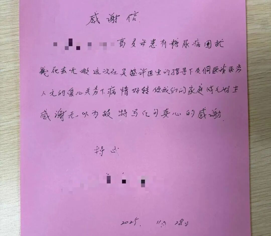 近日,三江县中医医院内三科收到患者石奶奶的亲笔感谢信,她以“妙手仁心、微笑服务”高度赞扬内三科医护人员的精湛医术与暖心服务。