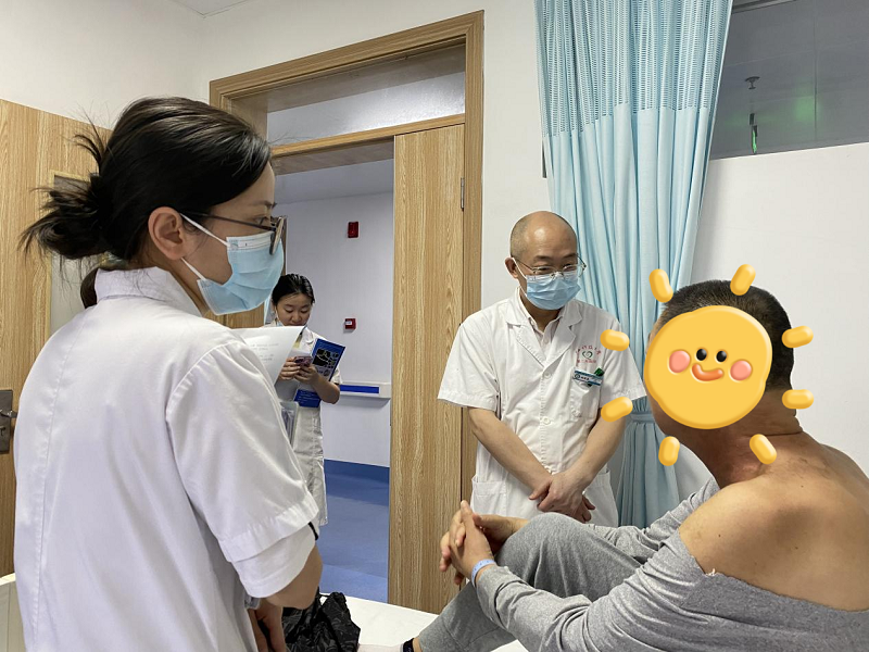 为了最大限度杀伤肿瘤细胞,同时保护鼻咽周围的视神经、腮腺等重要组织,赵迎喜团队为陈先生制定了个体化治疗计划:采用图像引导调强放疗(IGRT-IMRT)技术,通过大孔径CT模拟定位精准勾勒病灶范围,结合实时影像追踪调整照射角度与剂量,让射线“精准包裹”肿瘤,减少对正常组织的损伤;同时同步低剂量化疗,增强放疗敏感性,提升治疗效果。治疗期间,赵迎喜每周定期查房,密切监测陈先生的身体反应,针对出现的轻度口干、咽喉不适等症状,及时调整护理方案,指导其进行口腔护理与饮食调理,有效缓解了不良反应。