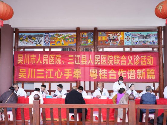 当天,一场暖心义诊活动同步在医院文化长廊开展,吴川市人民医院医疗专家与三江人民医院医护人员携手并肩,为前来咨询的群众提供专业的病情诊断、用药指导及健康检查服务,让百姓在家门口就享受到优质医疗资源,切实感受到粤桂协作带来的健康福祉。