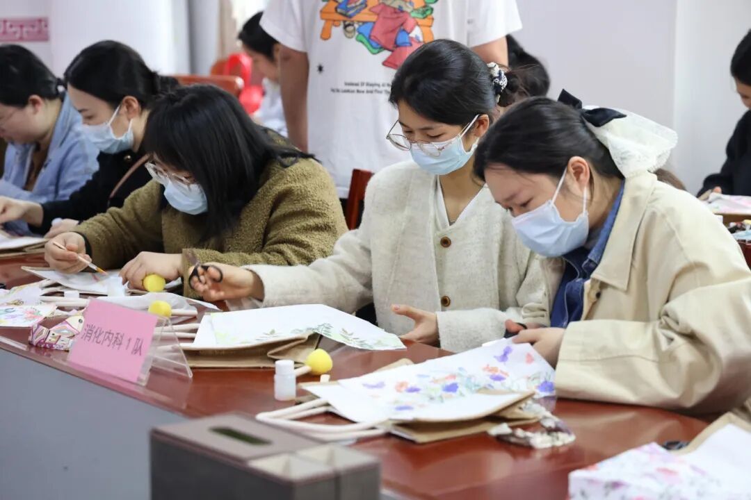 平日里,她们在药房抓药、在病房打针,指尖流淌的是严谨与专业;而此刻,指尖流淌的是专注与温柔。她们将春天的生机一一剪裁,细心贴在包面上,希望能像这些草木一样,无论在哪个岗位,都能给患者带去温暖和治愈的力量。