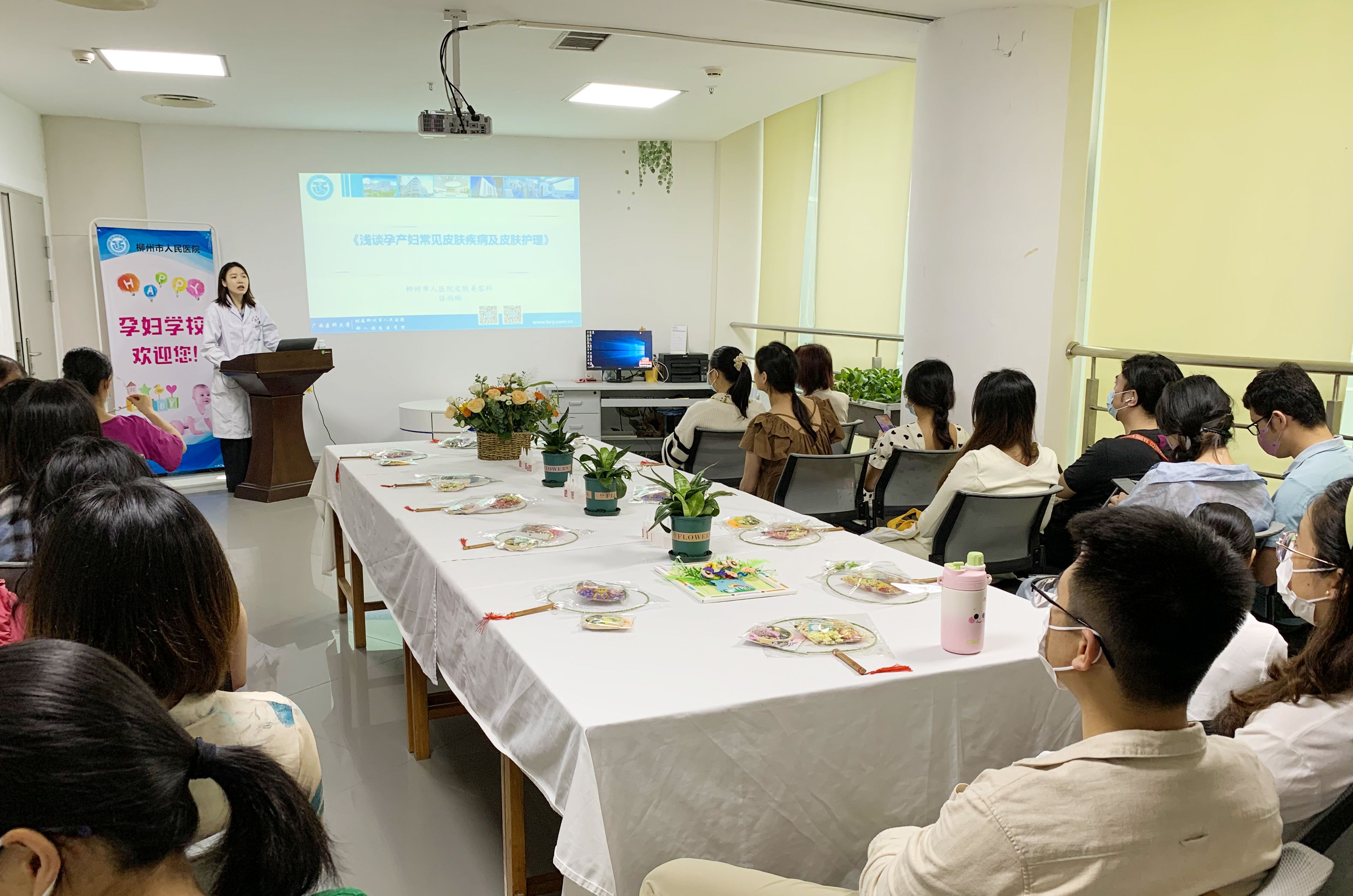 5月12日上午,在门诊三楼孕妇学校,皮肤美容科医师任雨琳跟大家介绍了孕期皮肤特点,分享了孕期护理皮肤的技巧,以及解答了大家关心的孕期护肤品的选择问题等,让孕产妇朋友感受到了满满的关爱,得到大家的一致好评。