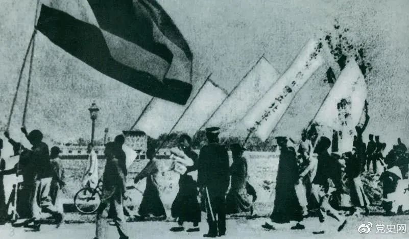 1919年5月4日,北京爆发学生反帝爱国运动。图为北京大学学生的示威游行队伍。