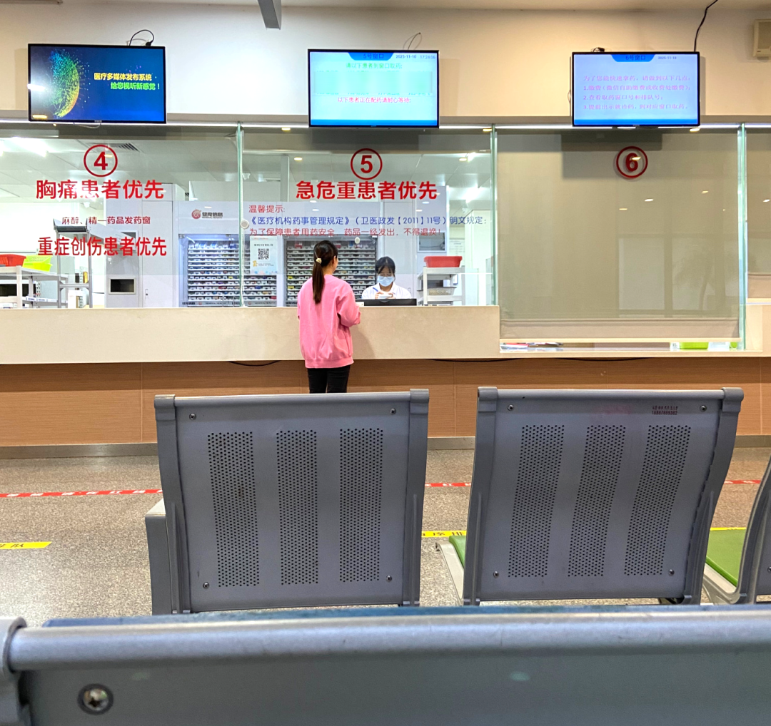 以前是医生开单后,患者需要到收费处或自助机上进行缴费,再到药房窗口刷卡、等候叫号、再取药,程序多且耗时长。多个窗口轮番叫号,患者需绷紧神经听名字,生怕错过,嘈杂的叫号声也让人更加焦虑。高峰期需站着排队,等待时间长。
