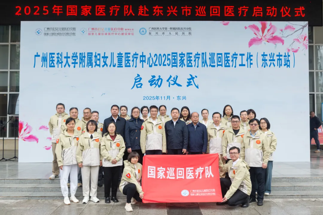 2025年11月4日上午,广州医科大学附属妇女儿童医疗中心2025国家医疗队巡回医疗工作(东兴市站)正式启动。广西壮族自治区卫生健康委员会副主任黎君君、医政处处长周晓露,防城港市二级巡视员郑武珠,广州医科大学附属妇女儿童医疗中心副主任(副院长)钟军,广州市妇女儿童医疗中心柳州医院执行院长印根权、党委副书记谭永红,东兴市人民政府副市长覃杨妮,东兴市卫生健康局局长黄艳华、国家医疗队全体成员、东兴市各医疗机构人员参加启动仪式。启动仪式由防城港市卫生健康委主任戴三军主持。