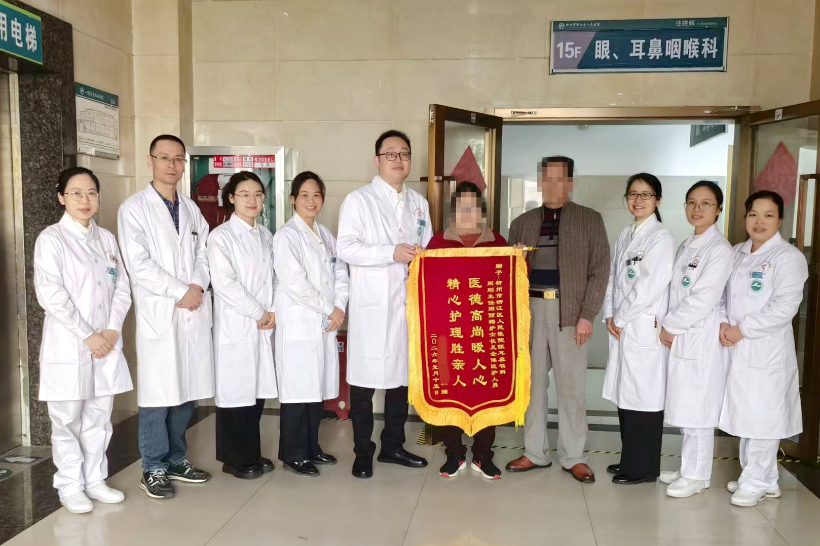 近日,柳江区人民医院眼、耳鼻咽喉科收到了新年的第一面锦旗。患者梁女士和家属一起将一面写有“医德高尚暖人心 精心护理胜亲人”的锦旗送到医护人员手中,感谢“光明天使们”让她重见光明。