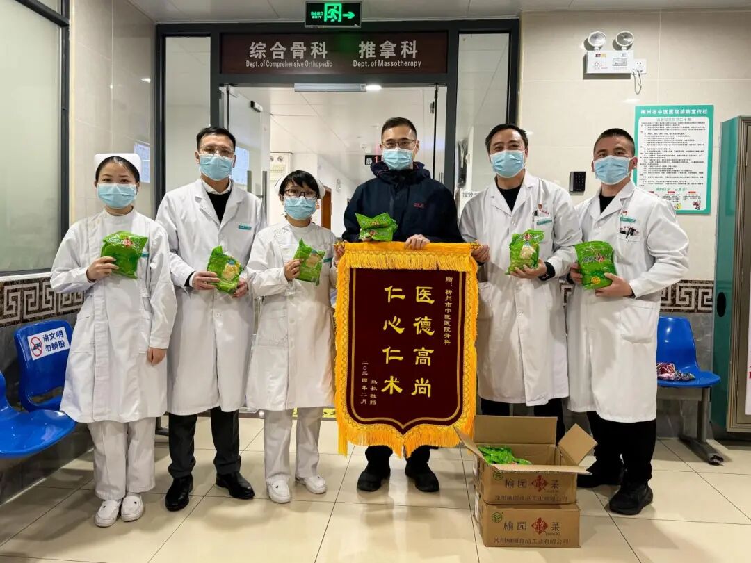 “东北老铁”于新鹏将感谢锦旗和东北酸菜送到柳州市中医医院综合骨科。