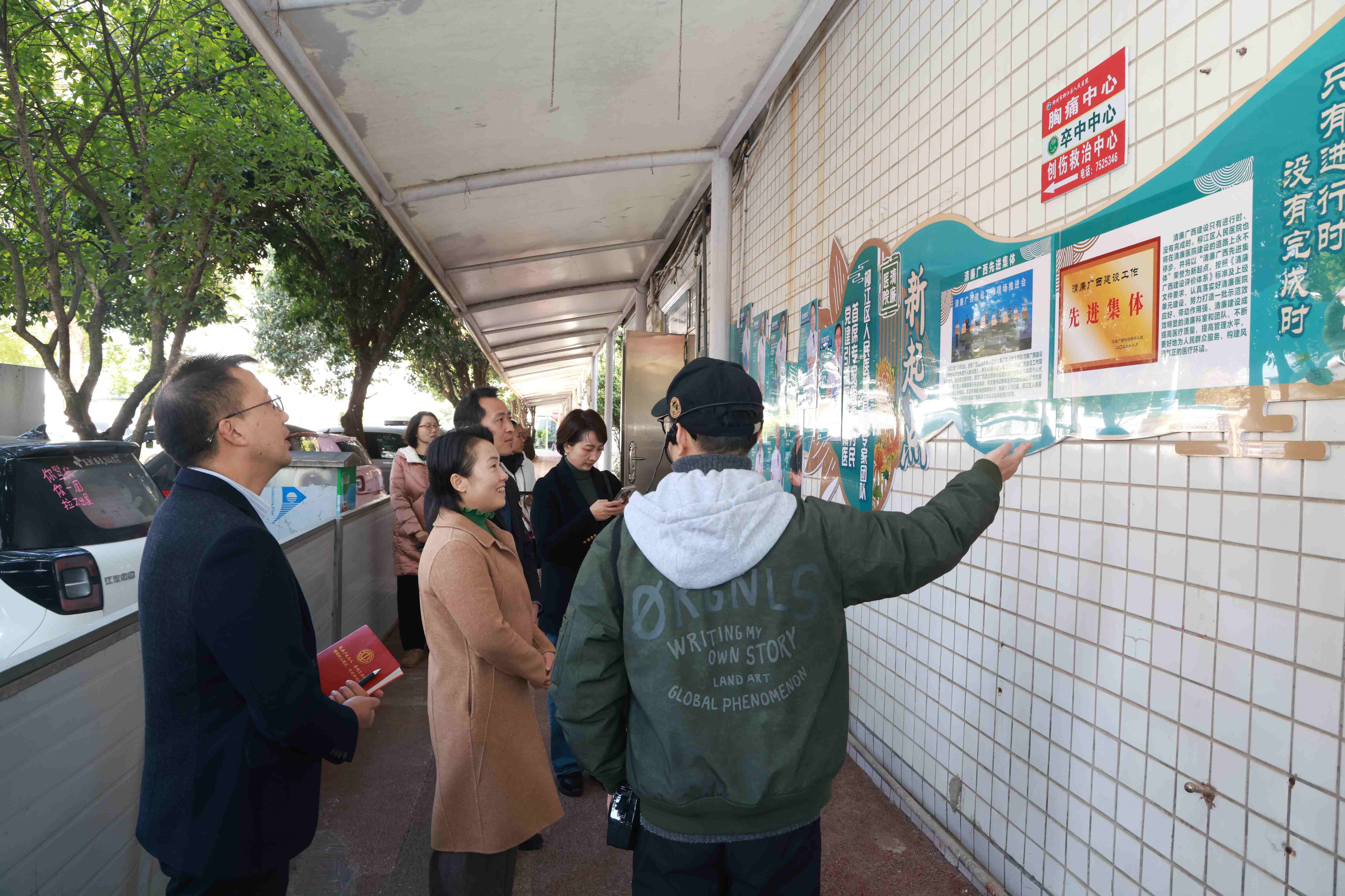 柳江区人民医院党委始终将清廉医院建设摆在重要位置,专门成立了由党委书记、院长担任组长的清廉医院建设工作小组,从宣传阵地着手,持续深化廉政教育,推动清廉医院建设入脑入心。交流团依次参观了门诊大厅、党建长廊、健廉路、红色文化广场、“清廉医家”廉政文化主题阵地等特色教育场所,在细致的讲解中边走边看、深入交流。